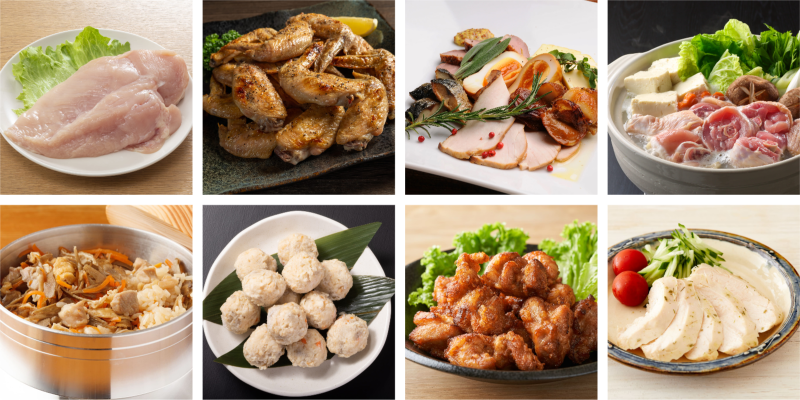 焼き・煮・蒸し・揚げ。食の現場に寄り添う多様な調理形態に対応した、鶏肉加工品を中心としたラインナップをご用意。
